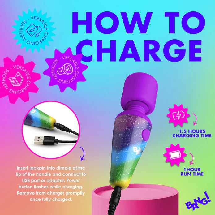 Elevate your self-love sessions with our high-performance vibrator! This rainbow mini wand comes power packed with 3 speeds and 7 varied vibration settings to customize your experience. The ergonomic design includes a flexible neck and wide head, making it easy to reach those sweet spots. Made from premium silicone that’s both phthalate-free and body-safe, you can play with peace of mind. Its rechargeable and cordless convenience means you can charge it with a USB and take it anywhere for spontaneous adventures.