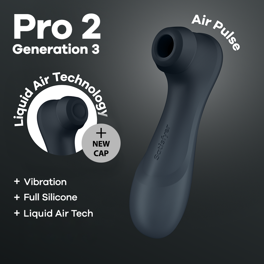 "The Satisfyer Pro 2 Generation 3 is the ultimate toy when it comes to clitoral stimulation. The successor to the popular Satisfyer Pro 2 is much more than a classic pressure wave vibrator with Air Pulse technology. Thanks to its two motors, you now also have the option of treating yourself to 12 vibration programs. The breathtaking revolution, however, is our innovative Liquid Air Technology: the extra cap with its thin and super-soft silicone membrane creates intense waves that mimic the sensual surge of pulsing water. The Pro 2 Generation 3 floods your body with these pleasure waves, creating a particularly natural feeling and enabling crystal-clear orgasms like you've never experienced before. You prefer to tease your clitoris with the familiar and completely non-contact Air Pulse technology? Since the Pro 2 Generation 3 comes with two attachments, you always have a choice. Immerse yourself in 11 pressure wave programs, which you can use solo or combine with 5 vibration speeds and 7 vibration patterns. "