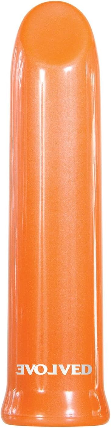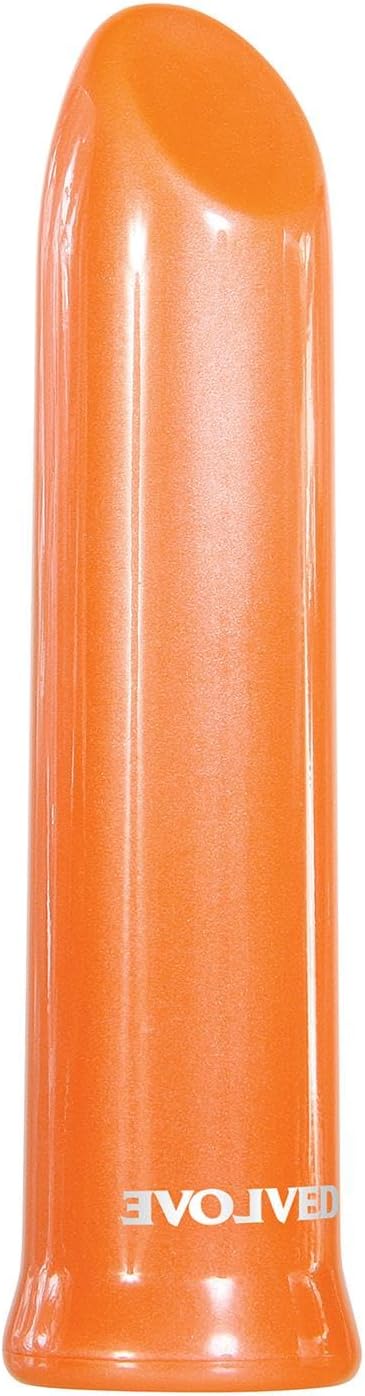 Evolved Lip Service Bullet Vibrator love is back collection. Glam up your nightstand with a pearly orange bullet that's as pretty as it is powerful. Its shiny, slick lipstick shape glides over your body with ten tantalizing vibration speeds as you ramp up your pleasure with the easy to use 1 button control. The angled tip offers delicious precision with a diagonal flat surface that culminates in a gently rounded tip. Completely submersible for bath and shower play, this petite beauty can travel with you discreetly, even in your make up bag! Powerful lipstick shaped bullet vibrator. Flat tipped head for angled stimulation.10 powerful speeds and functions. Easy to use one button control. LED illuminates button when in use. Made smooth and shiny ABS plastic. Height 4 inches, depth 1.04 inches, width 1.04 inches. Waterproof vibrations and submersible. Five years warranty.