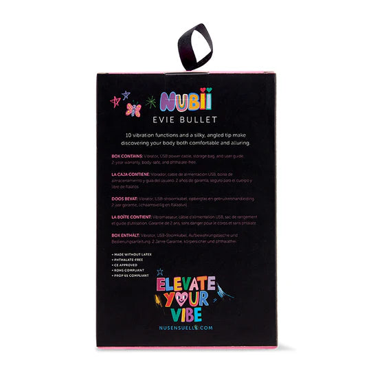 Always a trendsetter, Evie helped pave the way for affordable luxury. This lipstick-shaped bullet’s 5 speeds and 5 modes empower our fashion-forward users to be fearless and embrace their sexuality in a fun, flirty way. The bullet vibrator’s smooth, tapered design elevates the user’s level of comfort while experimenting with external stimulation. Not to mention, Evie is USB-rechargeable, 100% body safe, water submersible, and powered by our buzzy Nubii motor. Like our other Nubii products, Evie allows new users to purchase toys of superior quality at a more attractive price.