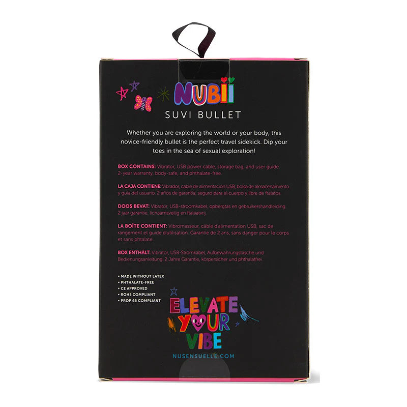 The petite, easy-to-operate Nu Sensuelle Nubii Suvi bullet caters to users of varying levels of experience, especially those interested in beginning their sexual pleasure journey. With 5 speeds and 5 vibration patterns, users who may be newer to vibration stimulation can customize their experience and discover which level of intensity is suitable for their needs. Although the product's rechargeable battery and body-safe, waterproof exterior are attractive attributes, the Suvi also provides a cost-conscious option for users. With the Suvi, even new users in their exploratory stage can purchase a product of higher quality without the fear of overspending for a personal massager. Whether you are exploring the world or your body, this novice-friendly bullet is the perfect travel sidekick.