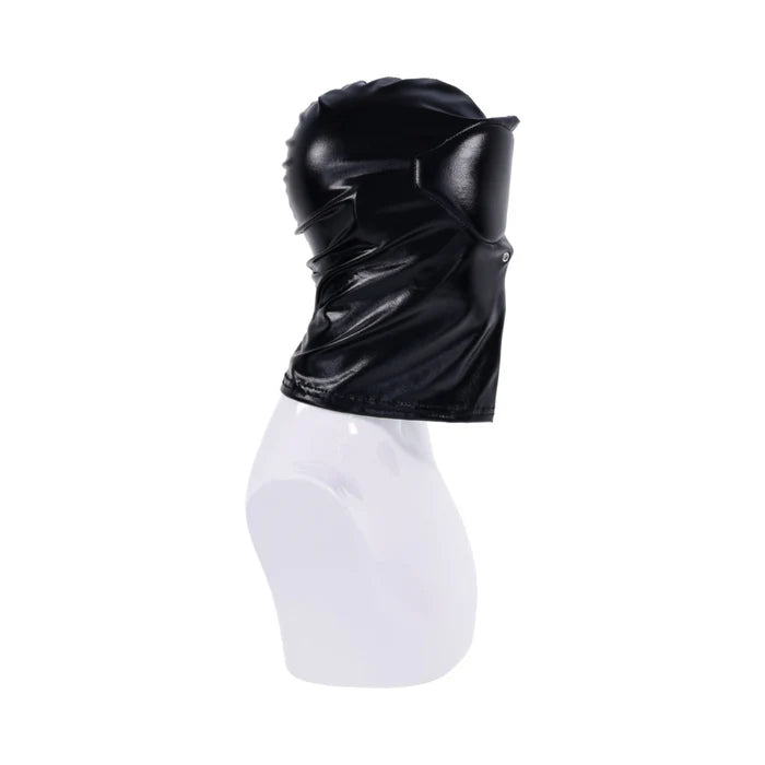 Disappear. Submit. The Edge® Black Out Hood erases identity and heightens every sense. Crafted from a sleek stretch material that molds to every contour, this full-coverage hood is built for comfort and complete sight deprivation. Extra padding surrounds the eyes, with contoured divots that allow them to remain open while keeping vision fully obscured. Two silver metal grommet nose vents maintain airflow through extended wear, while reinforced stitching ensures strength through every command and surrender. Designed for sensory deprivation and total submission, the Black Out Hood invites you to disappear completely and give in to control.